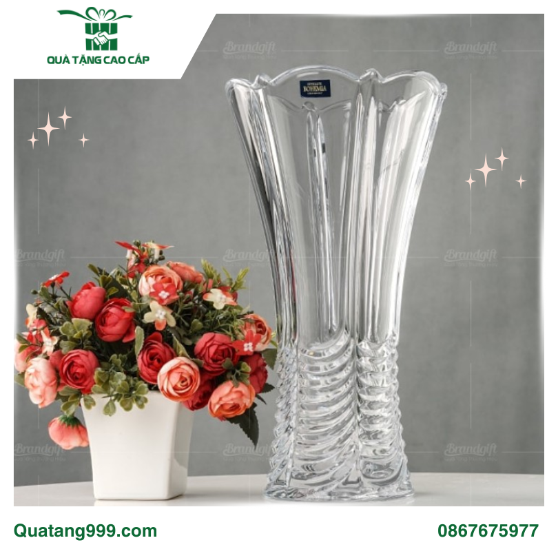 Những chiếc bình hoa tại Quatang999.com được chế tác bằng công nghệ ép khuôn hoặc thổi thủ công, tạo nên độ dày đồng đều và khả năng chịu lực va đập tuyệt vời. Bề mặt thủy tinh láng mịn chính là “mảnh đất màu mỡ” để chúng tôi phô diễn công nghệ in mực chuyên dụng nhập khẩu. Loại mực này có khả năng bám dính cực tốt trên bề mặt trơn, chống trầy xước và chịu được độ ẩm cao thường xuyên. Nhờ đó, logo doanh nghiệp luôn giữ được màu sắc chuẩn Pantone, tươi mới và sắc nét như ngày đầu tiên, ngay cả khi bình hoa được sử dụng liên tục trong nhiều năm.